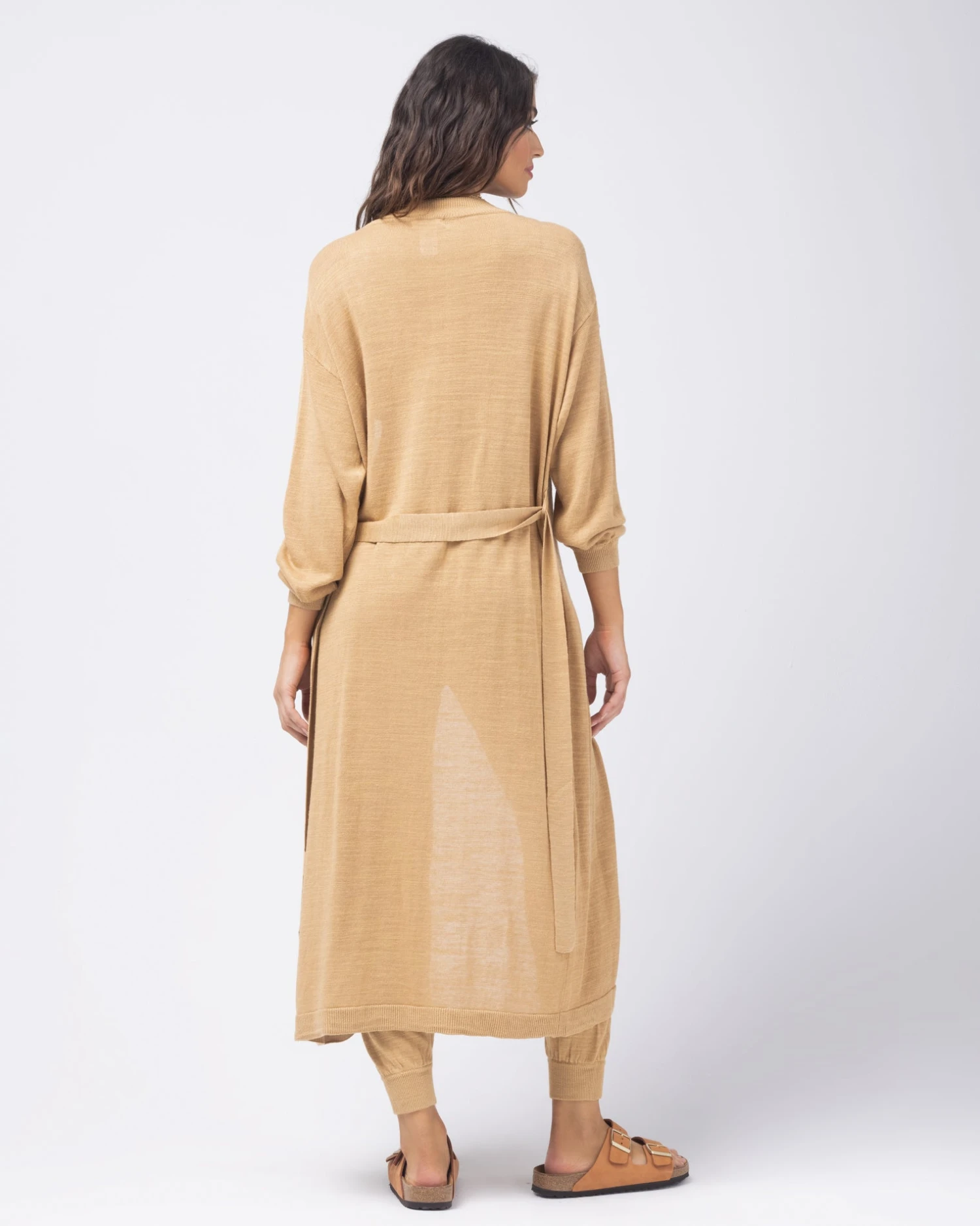An easy summertime throw on, the Azores Duster is the lounge staple you didn’t know you needed. Fashioned with a removable belt and ribbed trim, this linen knit sweater kit duster can be worn with the Azores Top and Azores Pant for a chic three-piece resort look.