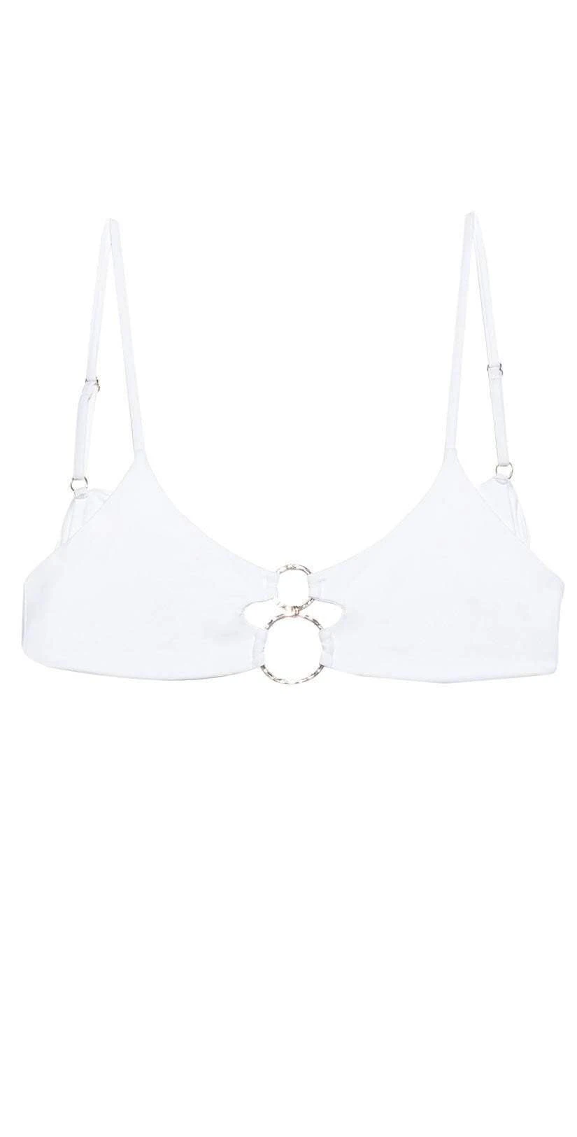 This Beach Bunny Lexi Bralette in white is a simple and chic bralette style top with gold ring detail in the middle to give you lift and support, this piece is a must have for a sexy look this summer season!