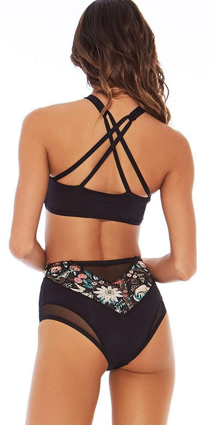 The Sierra top features a cropped, swim tank silhouette with a high neck, racer front and a double strapped X-back. This top is not padded with mesh insets for an extra hint of skin.