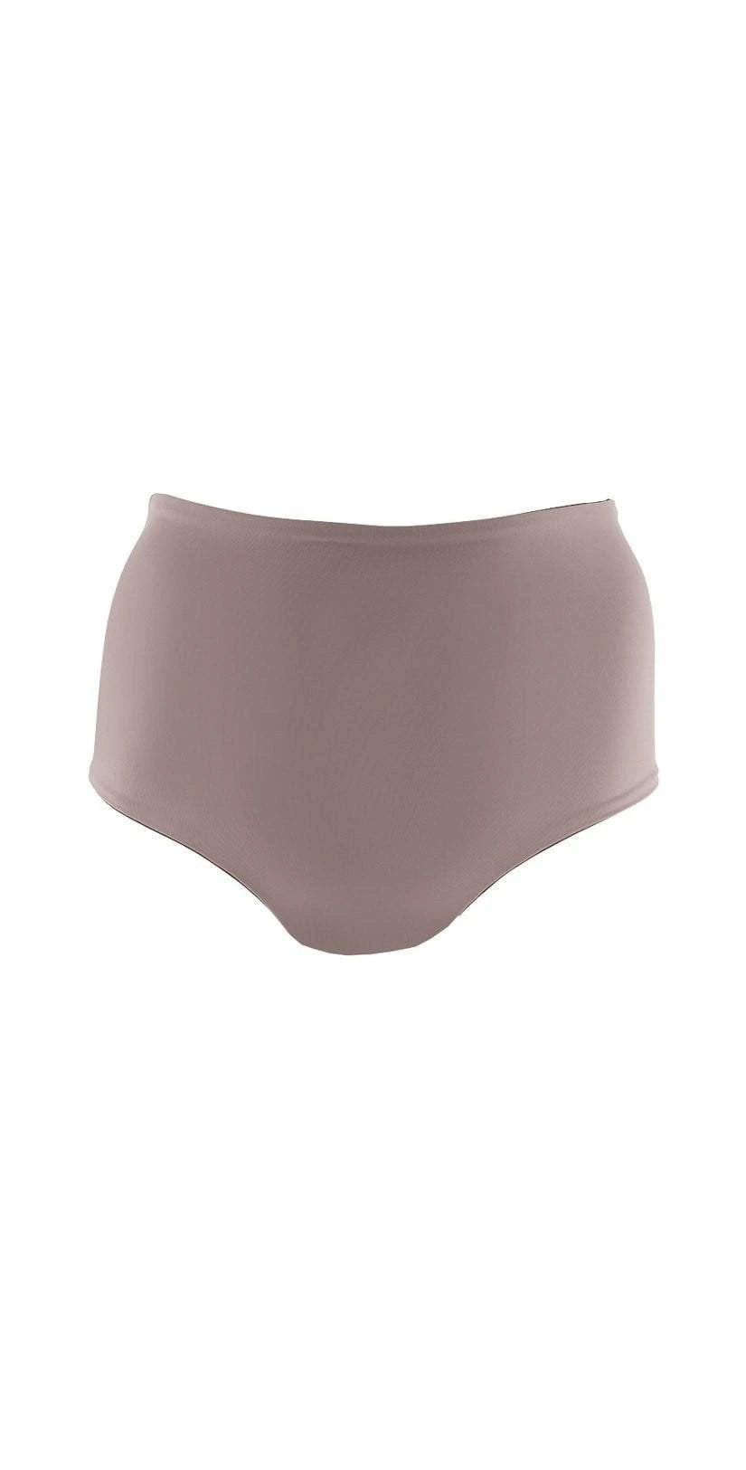 The figure flattering L Space Portia Bottom is a chocolate and dusty pearl color that reverses to a solid dusty pearl. Enjoy its versatile design! Wear it as either a fold-over hipster or as a retro high waist! Pair with the L Space Ozzie Top.